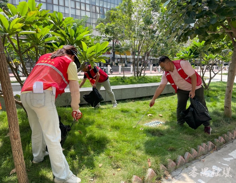 党员志愿者捡垃圾,保持公园干净卫生