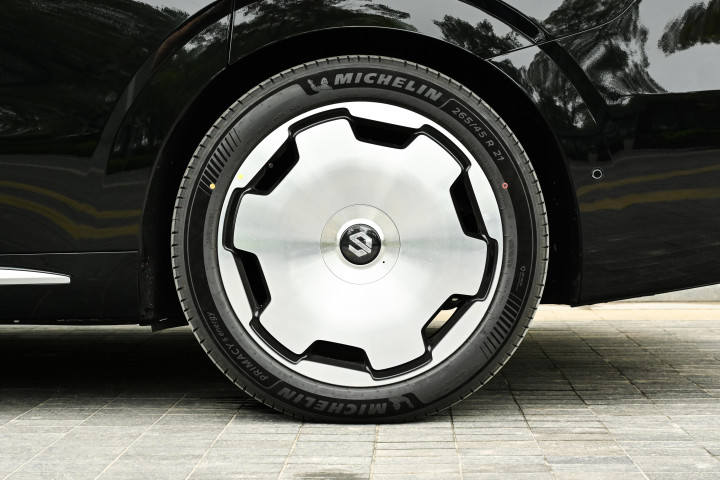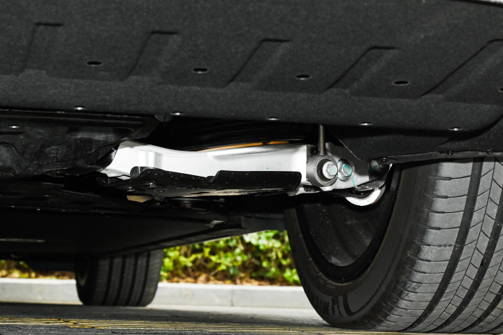 底盘部分,零跑 D19 采用前双叉臂、后五连杆独立悬架结构,全系标配双腔空气悬架与 CDC 可变阻尼减振器,搭配 LMC2.0 底盘控制系统,调校风格偏向舒适均衡,同时保留一定的操控稳定性。双腔空气悬架可根据车速、路况自动调节悬架高度与软硬,高速行驶时降低车身,提升行驶稳定性并优化风阻;经过颠簸路面时,悬架可过滤大部分细碎震动,保证车内平稳。CDC 减振器能实时调整阻尼,快速应对路面变化,减少车身侧倾与俯仰。车辆还具备圆规掉头、蟹行模式与双轮爆胎稳定控制等功能,在狭窄路段转弯、泊车时更灵活,遇到突发状况时可提升行驶安全性。这样的底盘配置在 25-30 万级车型中并不多见,空气悬架作为标配。