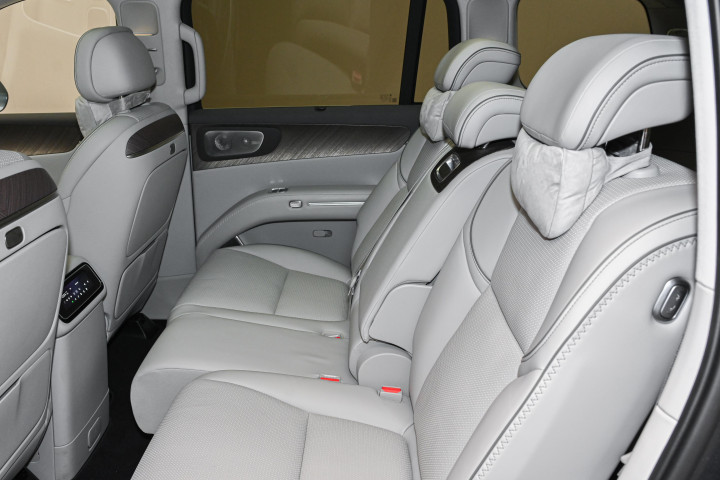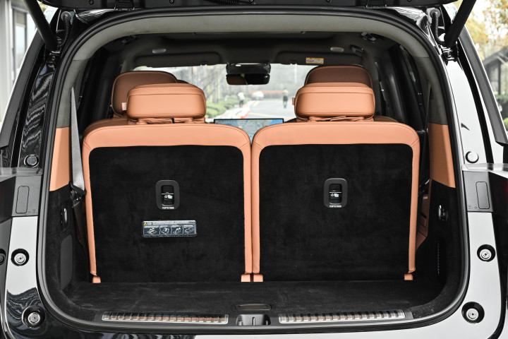 进入车内,尺寸带来的空间优势得到充分释放。D19 提供 2+2+2 六座与 2+3+2 七座两种布局,能够适配不同家庭的出行需求。3110mm 轴距配合纯平地板设计,让车内空间利用率处于较好水平,第二排中央通道宽度 195mm,乘客进出第三排动作更为从容。第三排座椅并非临时使用的局促布局,腿部空间能够满足日常乘坐需求,配备独立扶手、大面积舷窗与遮阳帘,座椅靠背支持 131 度角度调节,同时带有加热功能,长途乘坐也能保持舒适状态。常规状态下后备箱容积 840L,纯电版本额外配备 150L 前备舱,日常放置婴儿车、行李箱等物品十分轻松,放倒第三排座椅后储物空间可进一步拓展,这样的空间表现在同价位车型中较为突出,与更高价位的全尺寸 SUV 相比也有不错表现。