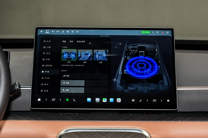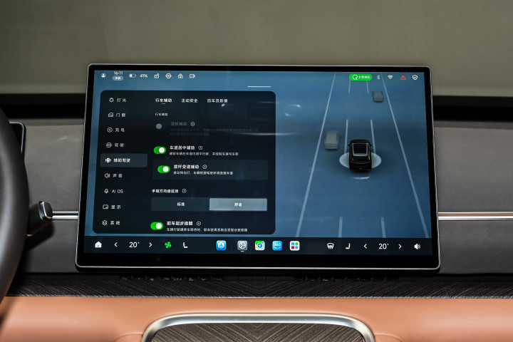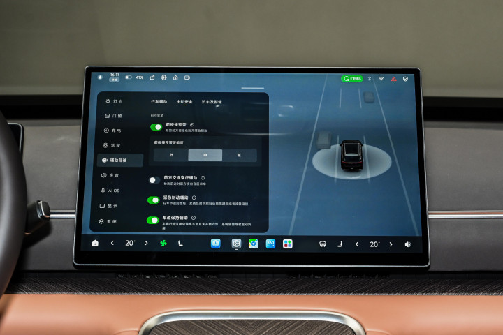 车辆搭载双高通骁龙 8797 芯片,总算力 1280TOPS,构建舱驾融合的中央域控架构,为车机与相关功能提供硬件支撑。车机系统运行流畅,响应速度较快,支持多屏联动、语音交互、在线娱乐等功能,语音识别准确率较高,可精准响应乘客指令。车辆搭载 VLA 端侧大模型,配合激光雷达与多颗高精度传感器,构建完整感知系统,支持高速、城区等多场景通行辅助功能,可实现从车位到车位的连贯辅助,行驶中能识别路况、车辆、行人等信息,做出合理行驶决策,提升行驶便利性。此外,车辆还搭载高压氧舱系统,采用车规级真空变压吸附制氧技术,支持弥散式与鼻吸式供氧,在高原环境或长时间驾驶时,可为车内提供富氧空气,缓解驾驶疲劳,搭配负离子净化功能,让车内环境保持健康舒适,成为区别于其他车型的特色配置。