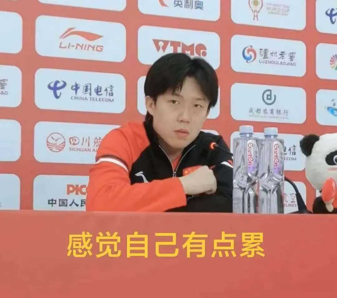 中国对阵法国赛后的发布会上,王楚钦说:“我感觉自己有点累。”